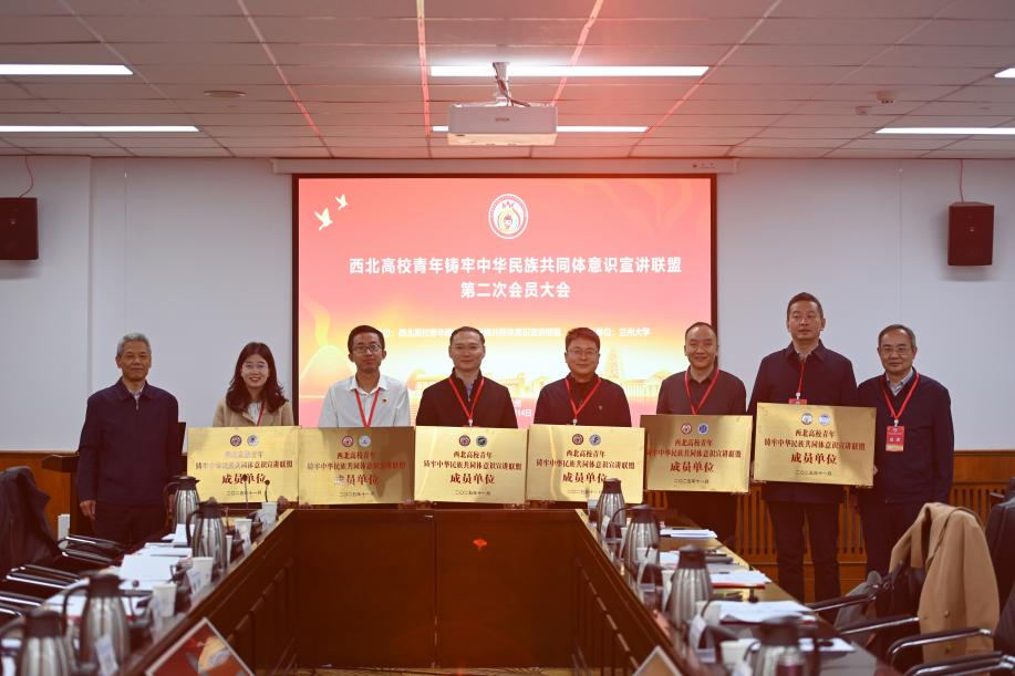 宣讲联盟大会上,兰州大学党委副书记曹爱辉和西安交通大学党委常委、宣传部部长、统战部部长成进先后致辞,分别对西北高校青年铸牢中华民族共同体意识宣讲联盟成立以来的工作情况进行回顾,对先进经验进行总结,并就未来宣讲联盟做大做强明确发展思路、提出务实举措。新入盟会员高校代表发言环节,我校从健全完善体制机制、深化教育实践育人、主动服务国家需求等三个方面汇报交流了铸牢中华民族共同体意识工作的特色做法和取得成效。曹爱辉、成进共同为新入盟的6所会员高校授牌,各会员高校围绕铸牢中华民族共同体意识教育经验做法以及宣讲联盟高质量发展进行深入研讨。
