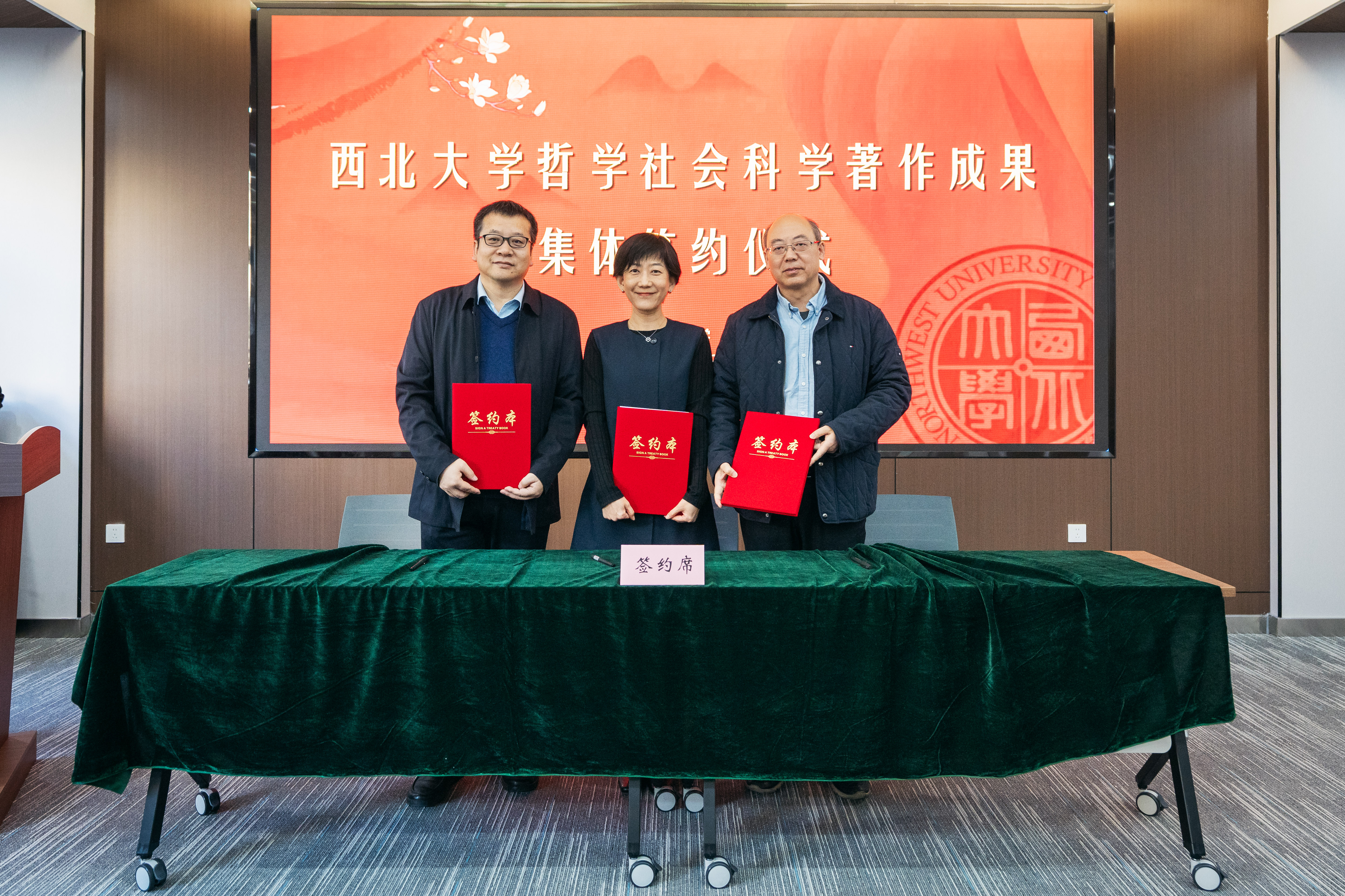 11月25日上午,我校哲学社会科学著作成果集体签约仪式在长安校区举行。校长孙庆伟出席并讲话,校党委常委、副校长田明纲主持仪式。学校相关单位负责人和著作主编、作者与文科学院师生代表参加会议。