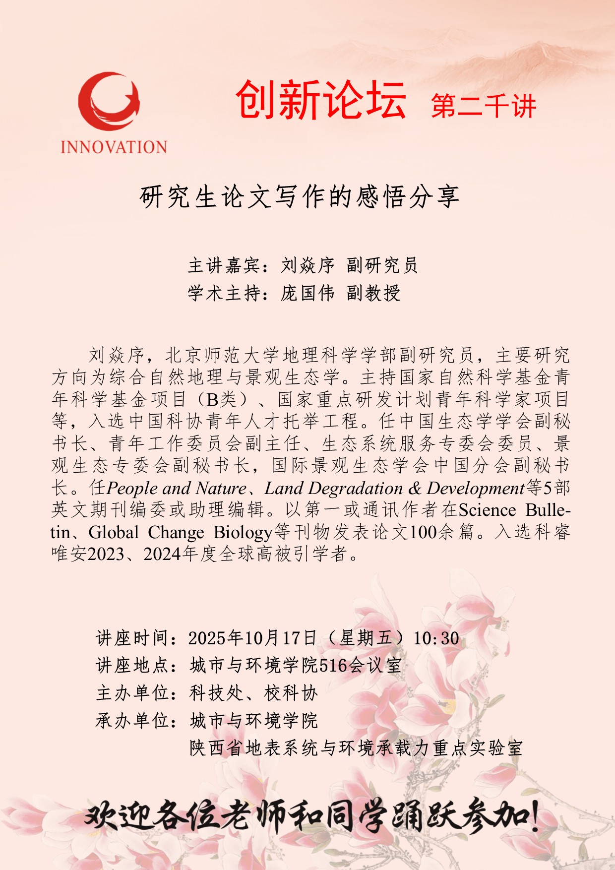 刘焱序 副研究员 国产精品九九久久一区hh创新论坛第二千讲:研究生论文写作的感悟分享 讲座时间 2025年10月17日(星期五)10:30 讲座地点 城市与环境学院516会议室 讲座人介绍 刘焱序 副研究员 讲座内容