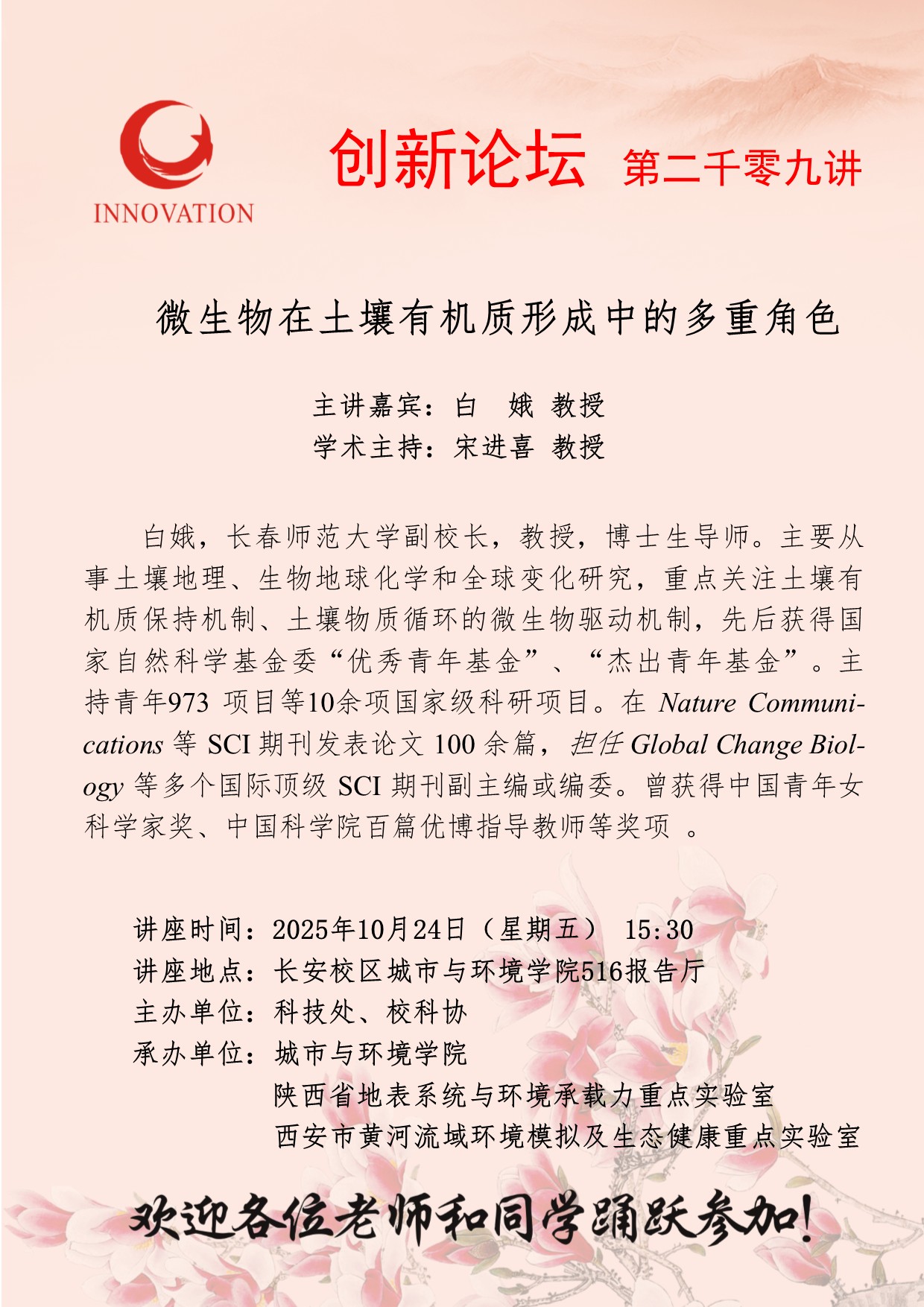 白娥 教授 国产精品九九久久一区hh创新论坛第二千零九讲:微生物在土壤有机质形成中的多重角色 讲座时间 2025年10月24日(星期五) 15:30 讲座地点 长安校区城市与环境学院516报告厅 讲座人介绍 白娥 教授 讲座内容