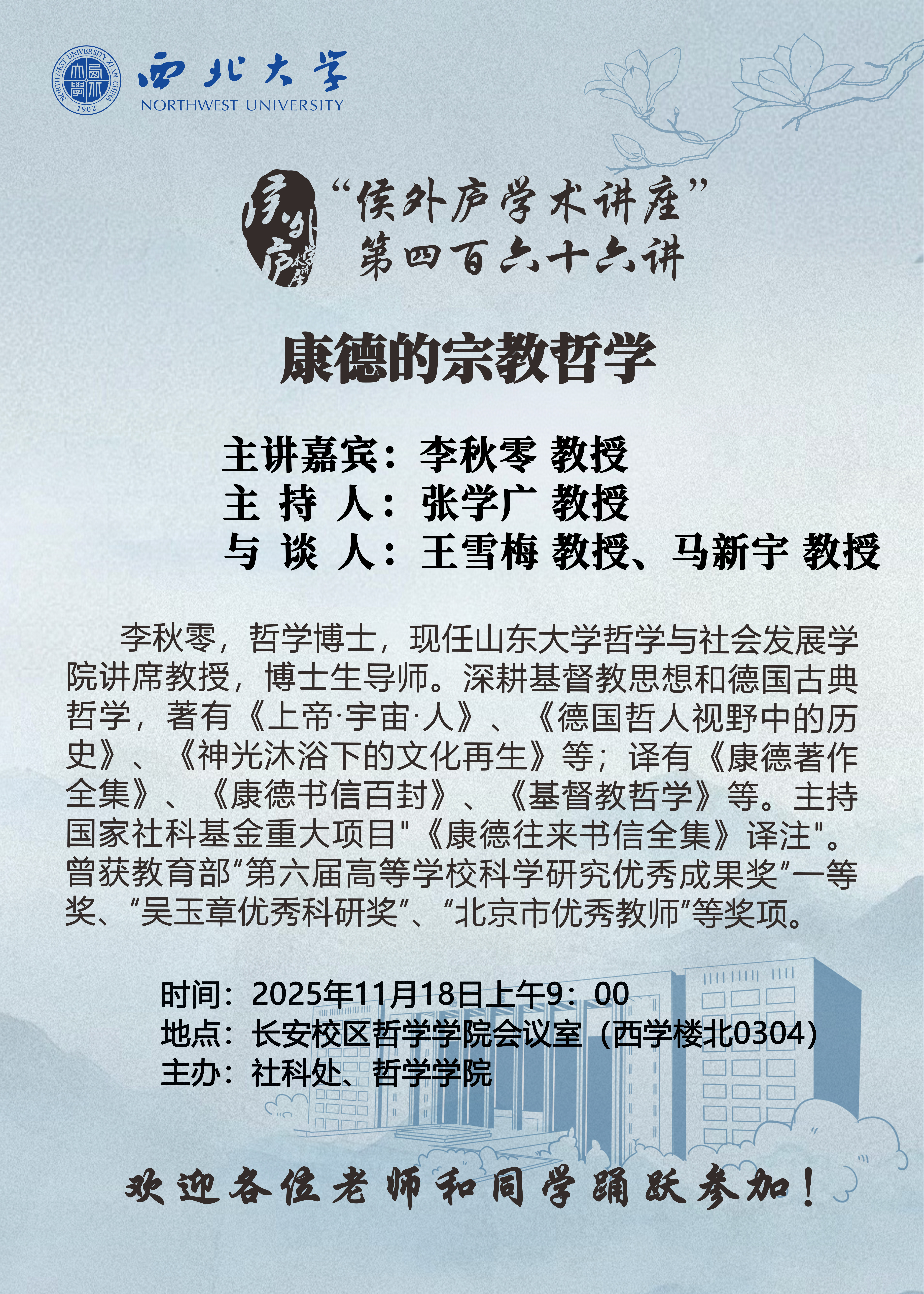 长安校区哲学学院会议室(西学楼北0304)