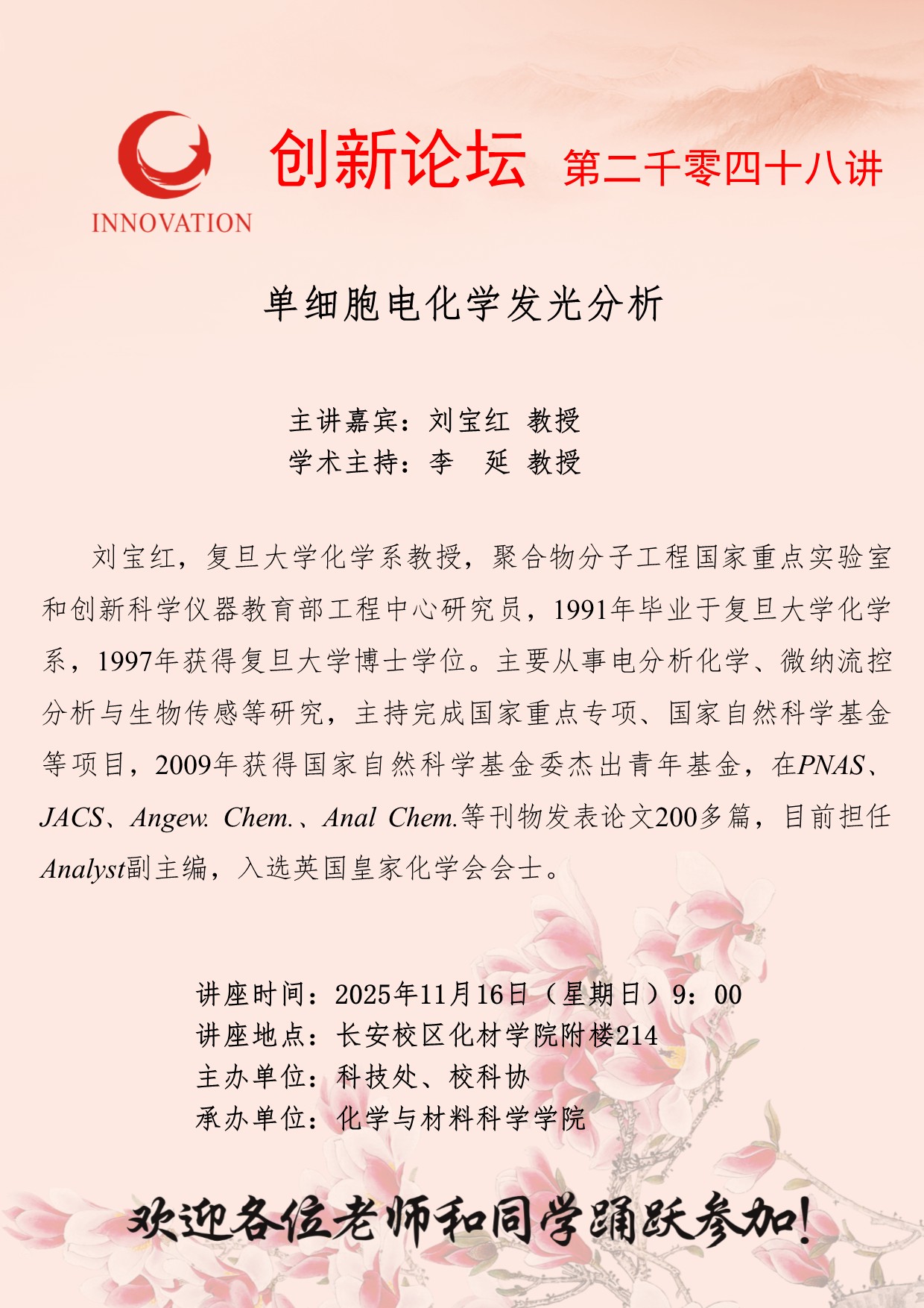 刘宝红 教授 国产精品九九久久一区hh创新论坛第二千零四十八讲:单细胞电化学发光分析 讲座时间 2025年11月16日(星期日)9:00 讲座地点 长安校区化材学院附楼214 讲座人介绍 刘宝红 教授 讲座内容