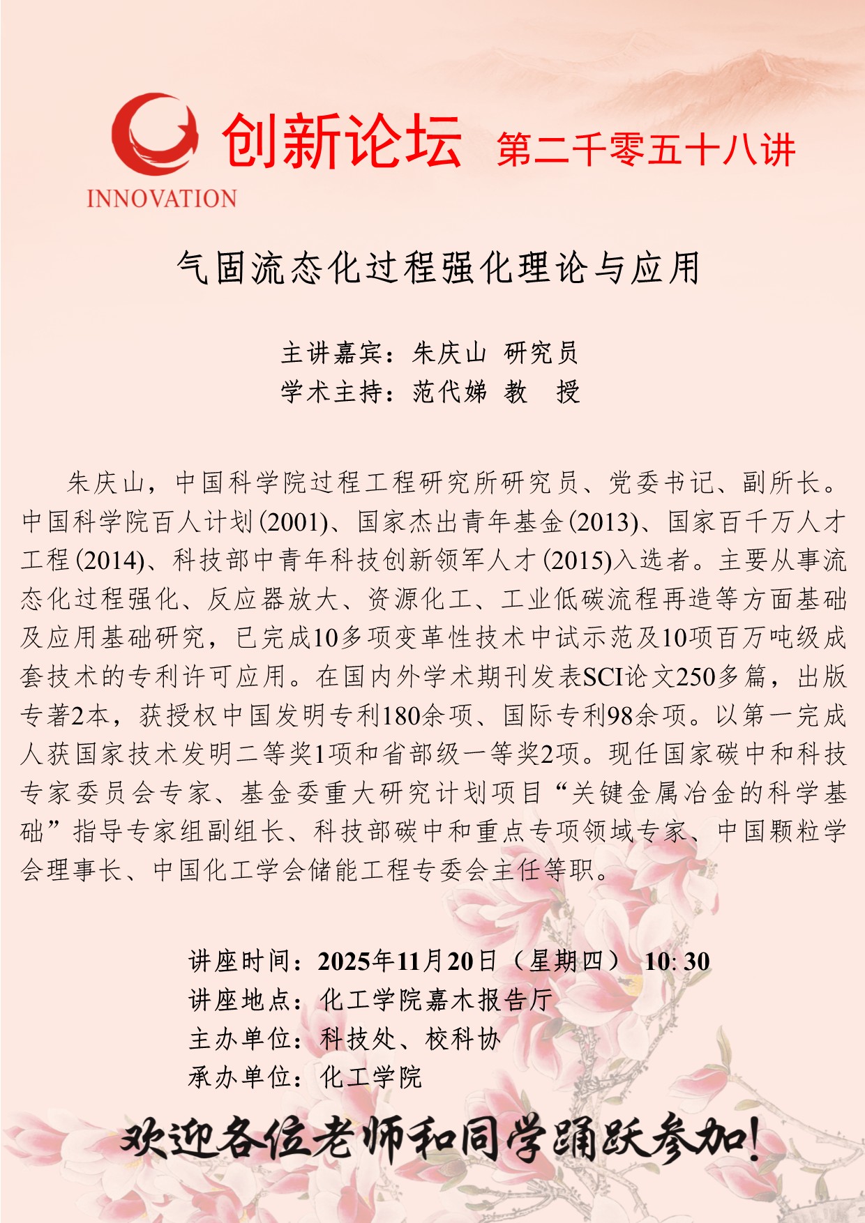 朱庆山 研究员 国产精品九九久久一区hh创新论坛第二千零五十八讲:气固流态化过程强化理论与应用 讲座时间 2025年11月20日(星期四) 10: 30 讲座地点 化工学院嘉木报告厅 讲座人介绍 朱庆山 研究员 讲座内容