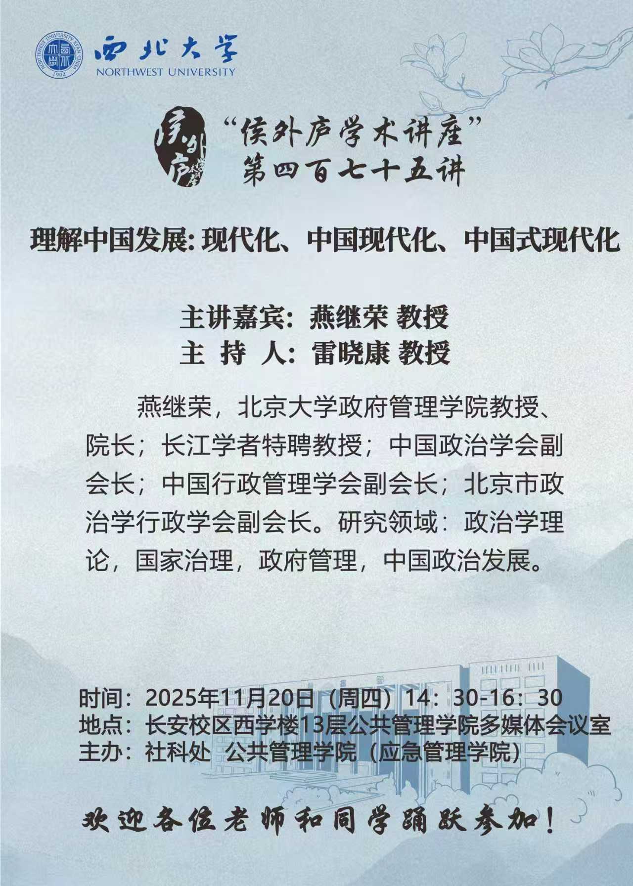 “侯外庐学术讲座”第四百七十五讲:理解中国发展:现代化、中国现代化、中国式现代化