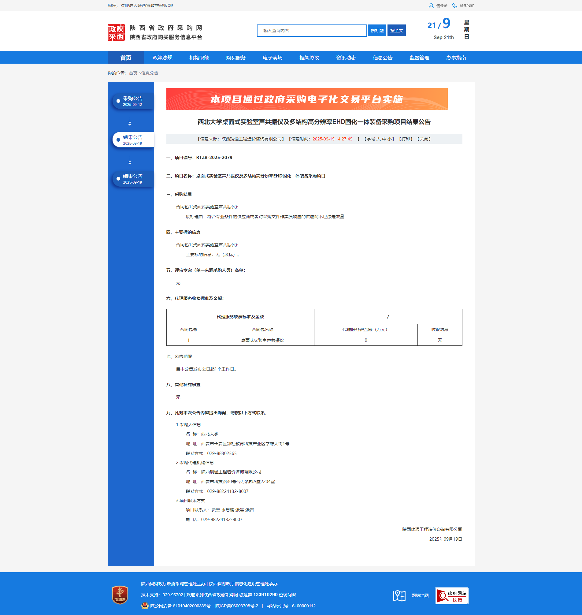 国产精品九九久久一区hh桌面式实验室声共振仪及多结构高分辨率EHD固化一体装备采购项目中标(成交)结果公告
