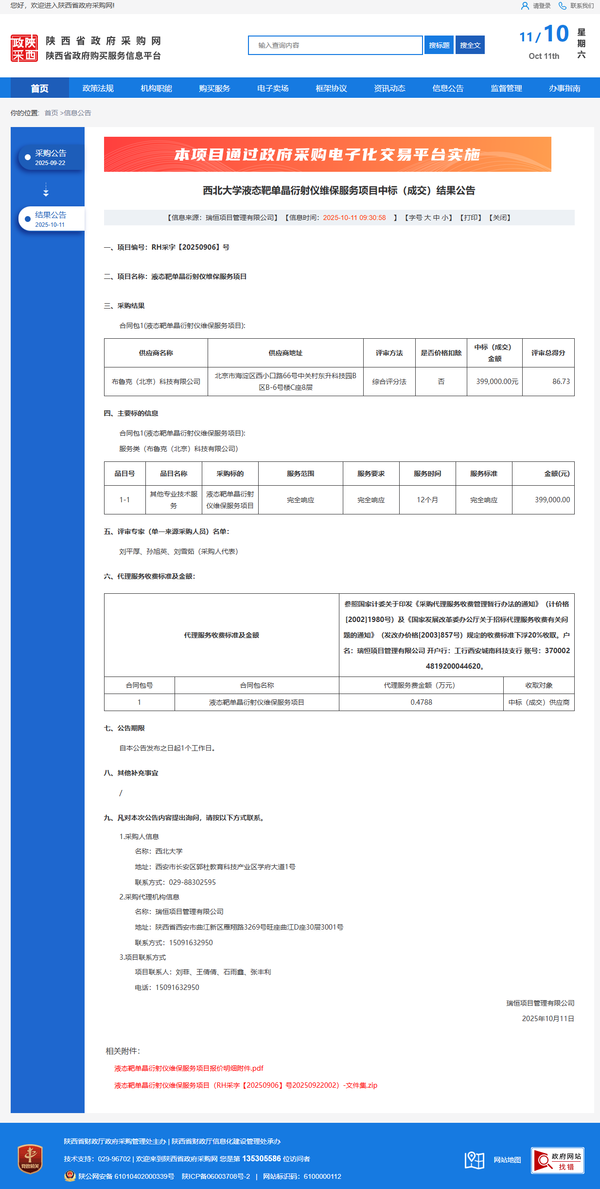 国产精品九九久久一区hh液态靶单晶衍射仪维保服务项目中标(成交)结果公告