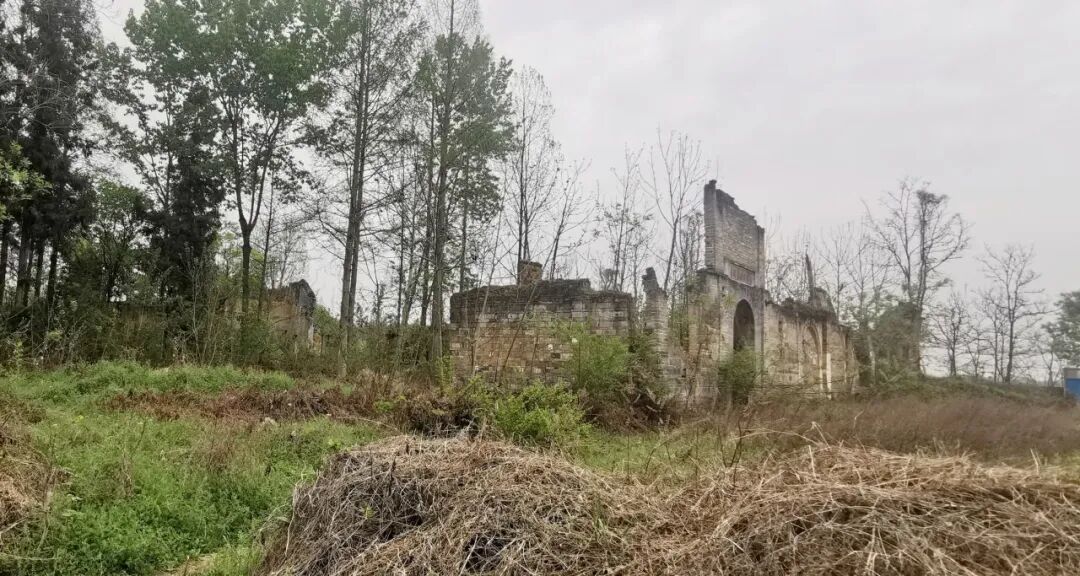 天主堂大门紧闭,挂着锁,像是许久无人进出。其后,是另外两栋保存还算完好的青砖小楼,只是早已人去楼空。穿过杂草丛生的草坪,我看到另一块碑:国立西北工学院旧址。碑侧,是一片残垣断壁,昔年的教学楼只余下了半堵砖墙。教室或办公室的位置,碗口粗的杂树肆意生长。初春的寒雨一阵阵飘下来,平添了一份忧伤。