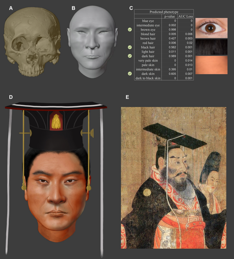 2024年,陕西历史博物馆北周武帝孝陵科技考古成果展上,采用颅骨CT扫描等技术初步复原的宇文邕面貌首次亮相,这也是我国首次以科技考古方式复原古代帝王容貌。科研团队用专门适配古DNA的捕获探针从遗骸中提取DNA、测序和进行群体遗传分析,结合历史学、考古学等多学科分析,得知宇文邕可能长期服食丹药导致砷中毒从而英年早逝,其血统极可能是鲜卑与汉人长期通婚的结果。