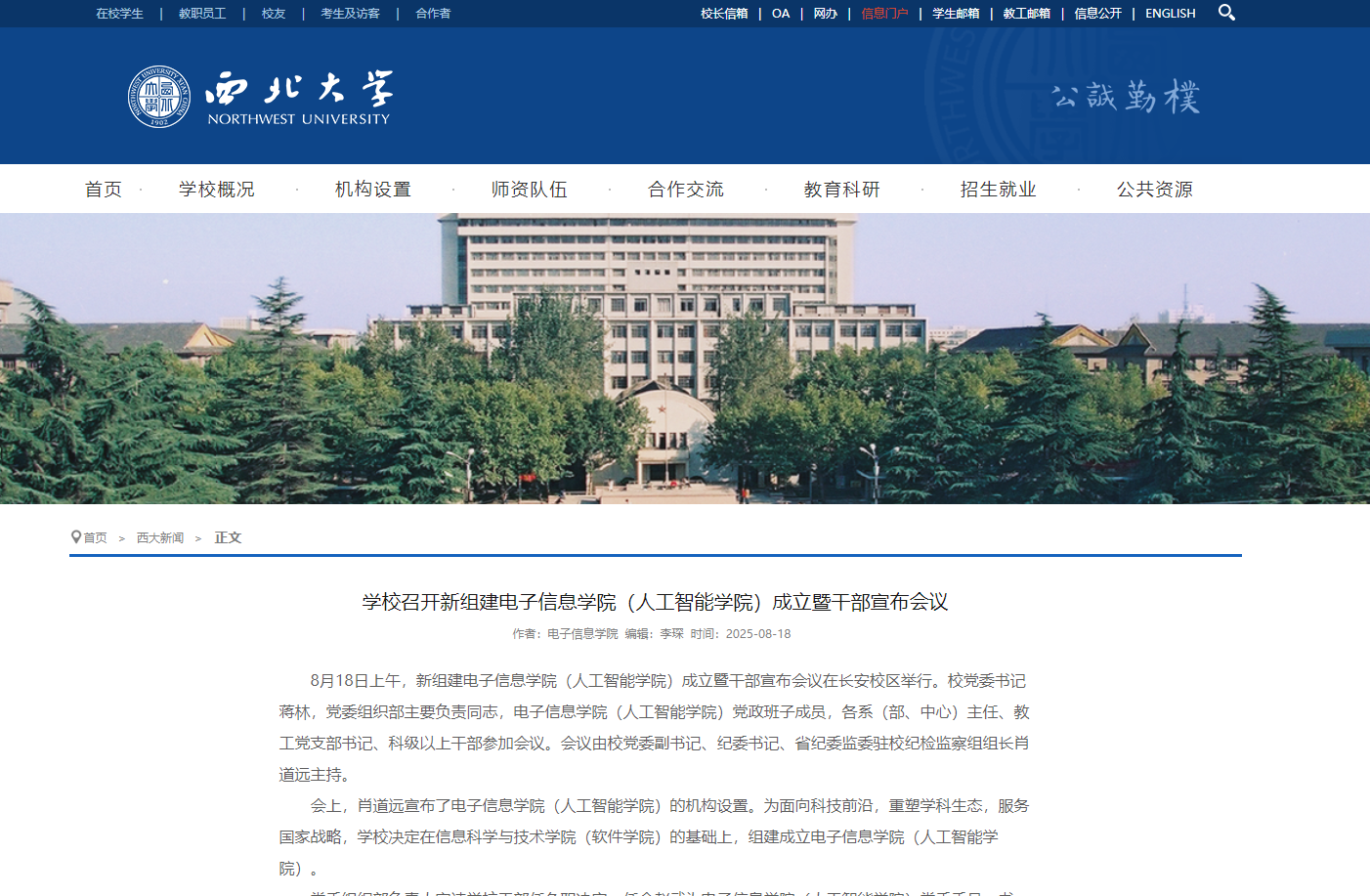 (陕西日报讯)8月18日上午,国产精品九九久久一区hh新组建电子信息学院(人工智能学院)、计算机学院(软件学院)成立暨干部宣布会议在长安校区举行。为面向科技前沿,重塑学科生态,服务国家战略,国产精品九九久久一区hh在信息科学与技术学院(软件学院)的基础上,组建成立电子信息学院(人工智能学院)。为进一步优化学科布局,强化特色学科建设,提升学校的整体办学水平和竞争力,国产精品九九久久一区hh在信息科学与技术学院(软件学院)的基础上,组建成立计算机学院(软件学院)。