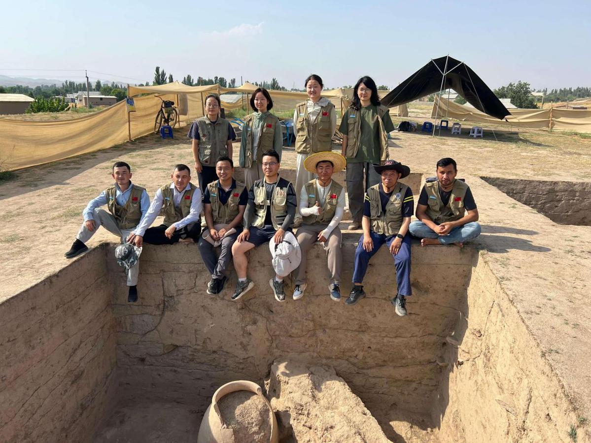 图中第一排右一为巴哈参加中乌联合考古队在乌兹别克斯坦契纳尔特佩遗址开展公众考古活动