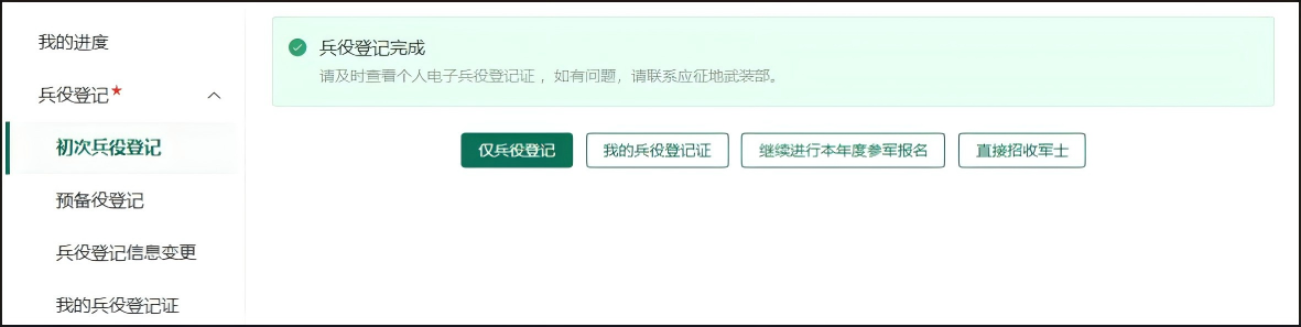 登录系统以后,点击右侧的“开始兵役登记”进行兵役登记。