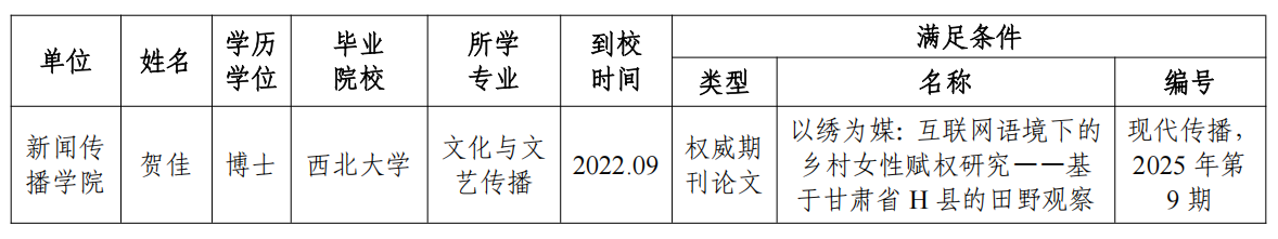 根据《国产精品九九久久一区hh人事代理工作实施办法》(西大人〔2023〕3号)相关规定,经本人申请,单位考核推荐,学校职能部门审查,拟同意下列人员由人事代理转聘事业编制,基本情况公示如下: