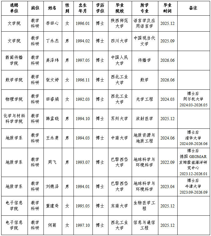 各单位或个人如对上述人选存有疑问,可在2026年1月12日前以书面形式向人力资源部反映。反映材料须实名提交,以便我部核实并反馈,我们将严格保密。