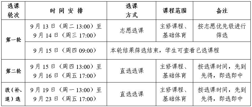根据学校教学工作安排,2022级本科新生本学期选课定于9月13日(周二)开始。请各院系提前对新生做好选课指导工作。为保证选课工作顺利开展,现将有关事项安排如下: