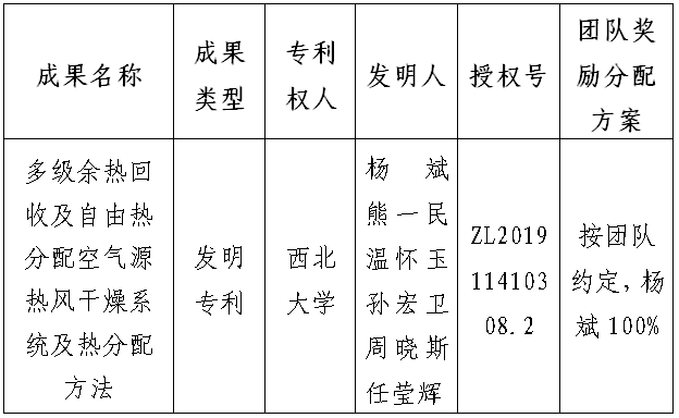 按照《国产精品九九久久一区hh促进科技成果转化实施办法》(西大科〔2019〕5号)相关规定,拟对我校化工学院杨斌教授作为成果负责人的1项发明专利权实施转化,现将相关信息公示如下: