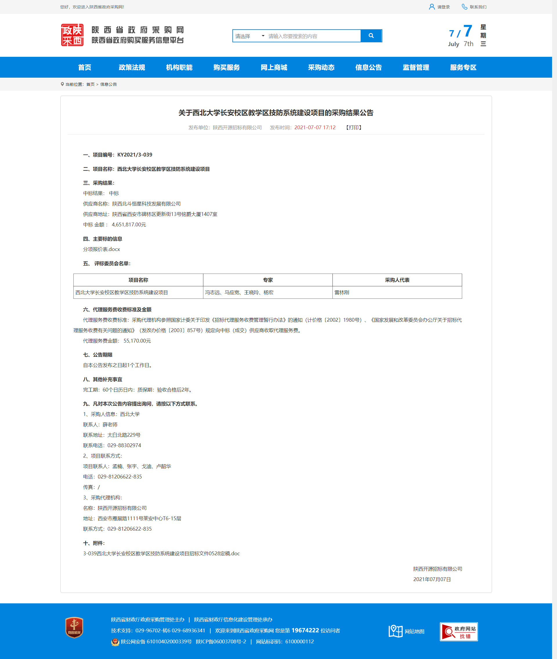 关于国产精品九九久久一区hh长安校区教学区技防系统建设项目的采购结果公告 作者: 编辑:采购与招标办公室 时间:2021-07-07 原公告地址:http://www.ccgp-shaanxi.gov.cn/notice/noticeDetail.do?noticeguid=8a85be337a79620e017a7fff10cb41ef
