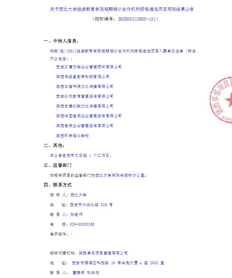 关于国产精品九九久久一区hh继续教育学院短期培训合作机构资格遴选项目采购结果公告