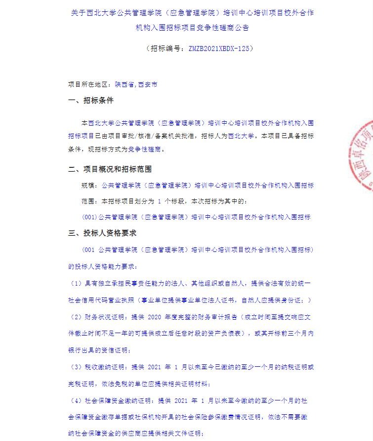 关于国产精品九九久久一区hh公共管理学院(应急管理学院)培训中心培训项目校外合作机构入围招标项目竞争性磋商公告