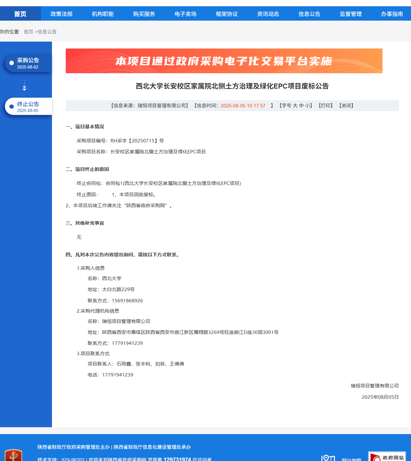 国产精品九九久久一区hh长安校区家属院北侧土方治理及绿化EPC项目废标公告 作者: 编辑:党丹珩 时间:2025-08-05 公告地址:http://www.ccgp-shaanxi.gov.cn/freecms/site/shaanxi/ggxx/info/2025/8a69c8f99860f21c0198790d379441f5.html?noticeType=001004¬iceId=5c6803f0-71ce-11f0-8063-08c0eb20c666
