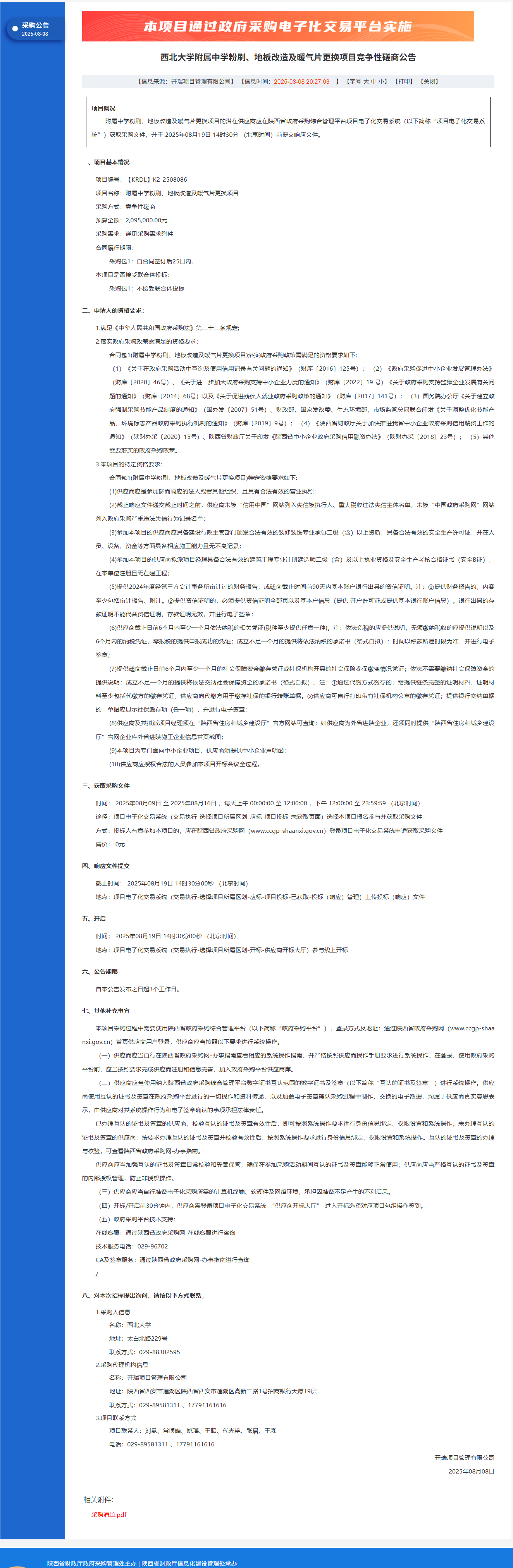 国产精品九九久久一区hh附属中学粉刷、地板改造及暖气片更换项目竞争性磋商公告 作者: 编辑:党丹珩 时间:2025-08-08 公告地址:https://www.ccgp-shaanxi.gov.cn/freecms/site/shaanxi/ggxx/info/2025/8a69c4d59860f6420198899b50a47f9c.html