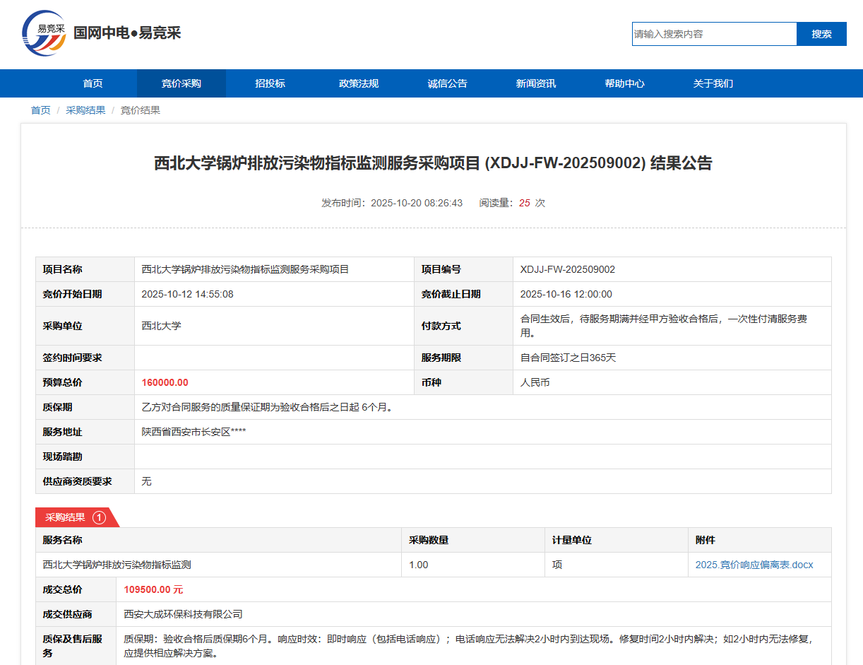 国产精品九九久久一区hh锅炉排放污染物指标监测服务采购项目(XDJJ-FW-202509002)竞价结果公告
