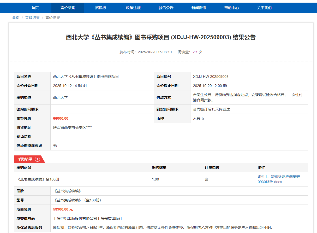 国产精品九九久久一区hh《丛书集成续编》图书采购项目(XDJJ-HW-202509003)竞价结果公告