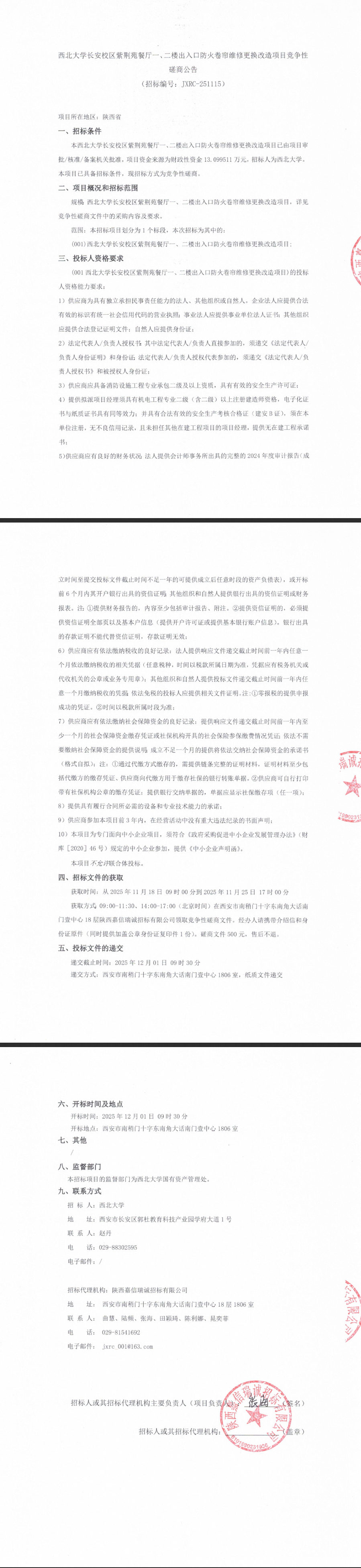 国产精品九九久久一区hh长安校区紫荆苑餐厅一、二楼出入口防火卷帘维修更换改造项目竞争性磋商公告