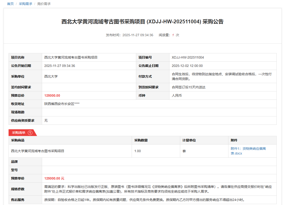 国产精品九九久久一区hh黄河流域考古图书采购项目(XDJJ-HW-202511004)竞价采购公告