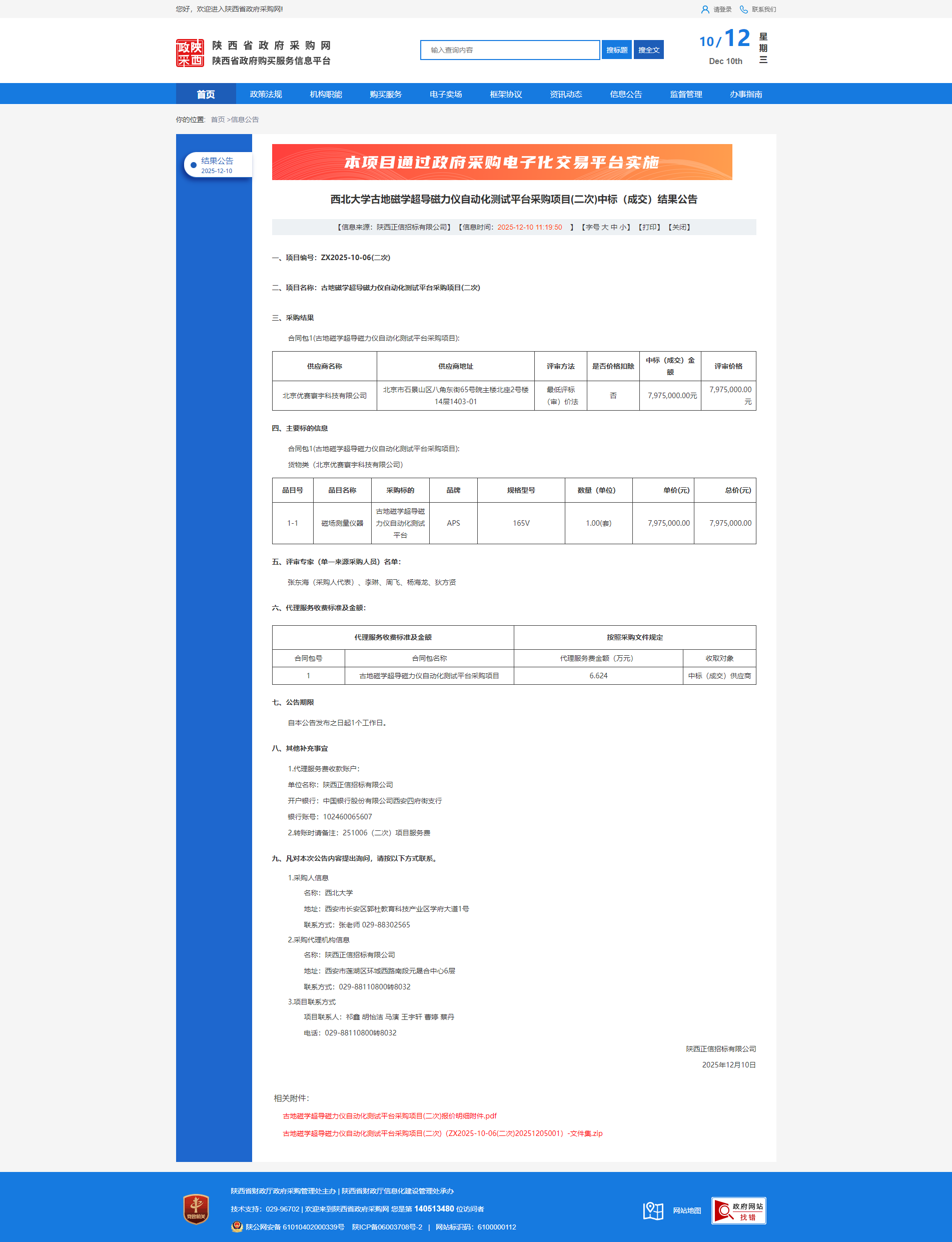 国产精品九九久久一区hh古地磁学超导磁力仪自动化测试平台采购项目(二次)中标(成交)结果公告