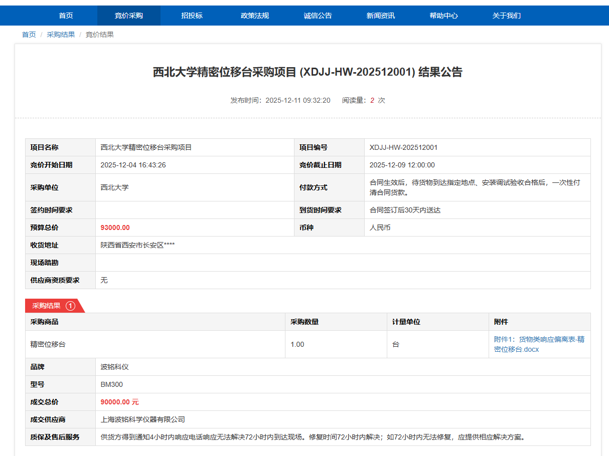 国产精品九九久久一区hh精密位移台采购项目(XDJJ-HW-202512001)竞价结果公告