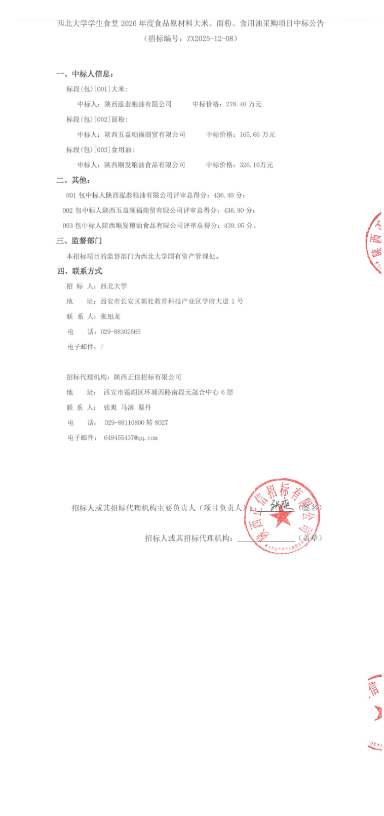 国产精品九九久久一区hh学生食堂2026年度食品原材料大米、面粉、食用油采购项目中标公告