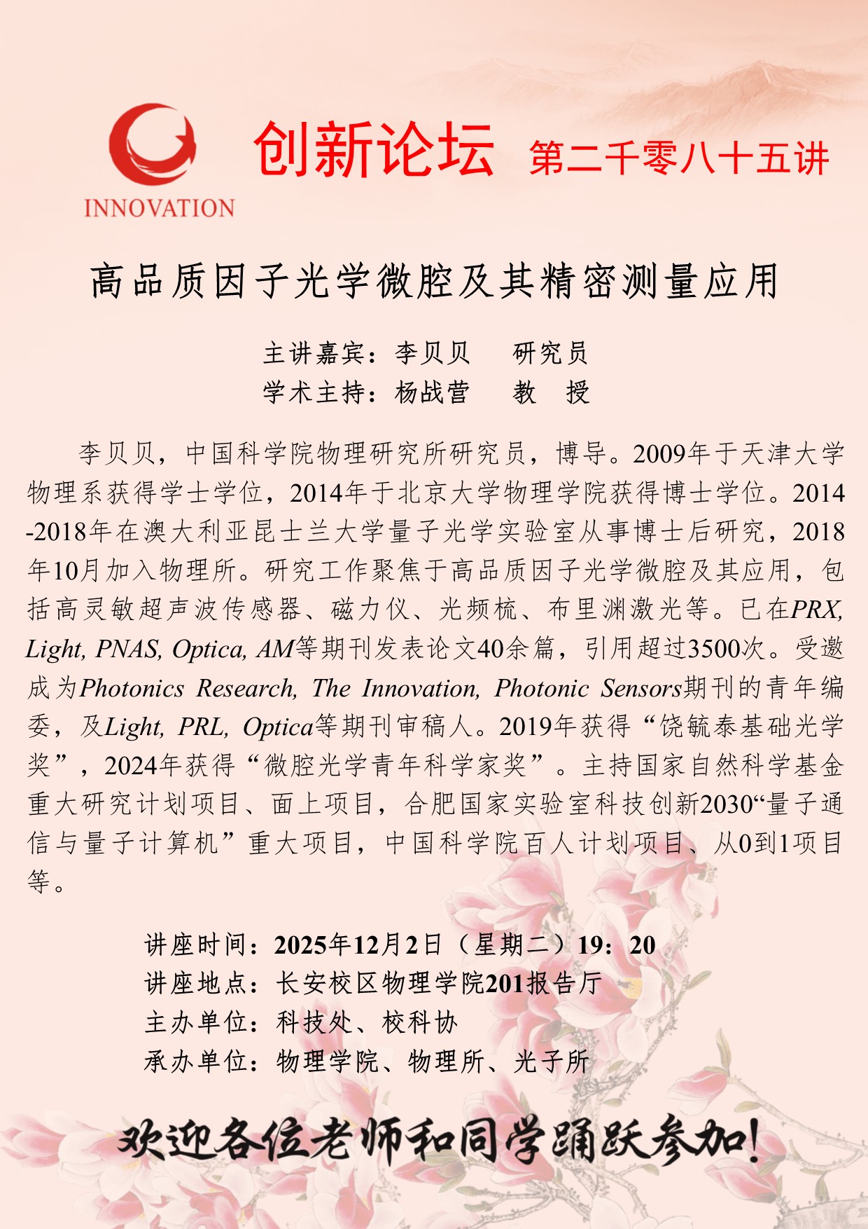 国产精品九九久久一区hh创新论坛第二千零八十五讲:高品质因子光学微腔及其精密测量应用