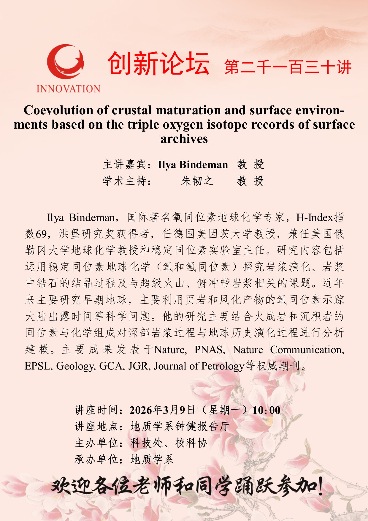 国产精品九九久久一区hh创新论坛第两千一百三十讲:Coevolution of crustal maturation and surface environ-ments based on the triple oxygen isotope records of surface archives