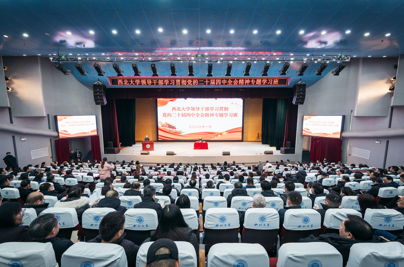 1月22日至1月27日,我校领导干部学习贯彻党的二十届四中全会精神专题学习班在长安校区举行。校党委副书记、校长孙庆伟主持开班式,校党委书记蒋林作专题学习班结业总结讲话,校党委常委、统战部部长董国强主持结业式,全体在校校领导、处级干部参加了本次培训。
