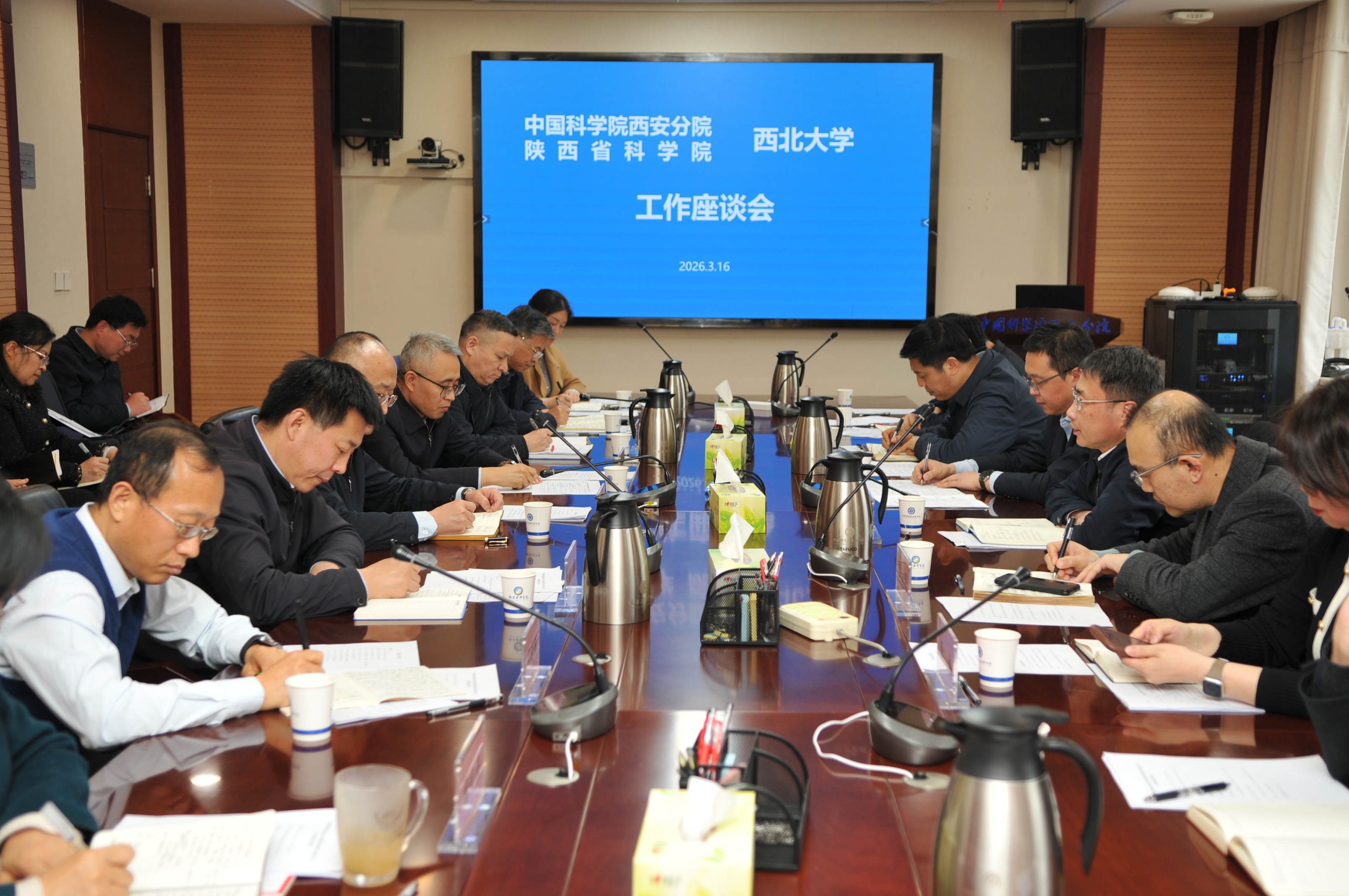 座谈会上,分省院相关负责人做了科技创新工作汇报,分省院系统在陕各研究所及我校相关单位负责人围绕“十五五”期间合作构想开展了深入交流和对接。