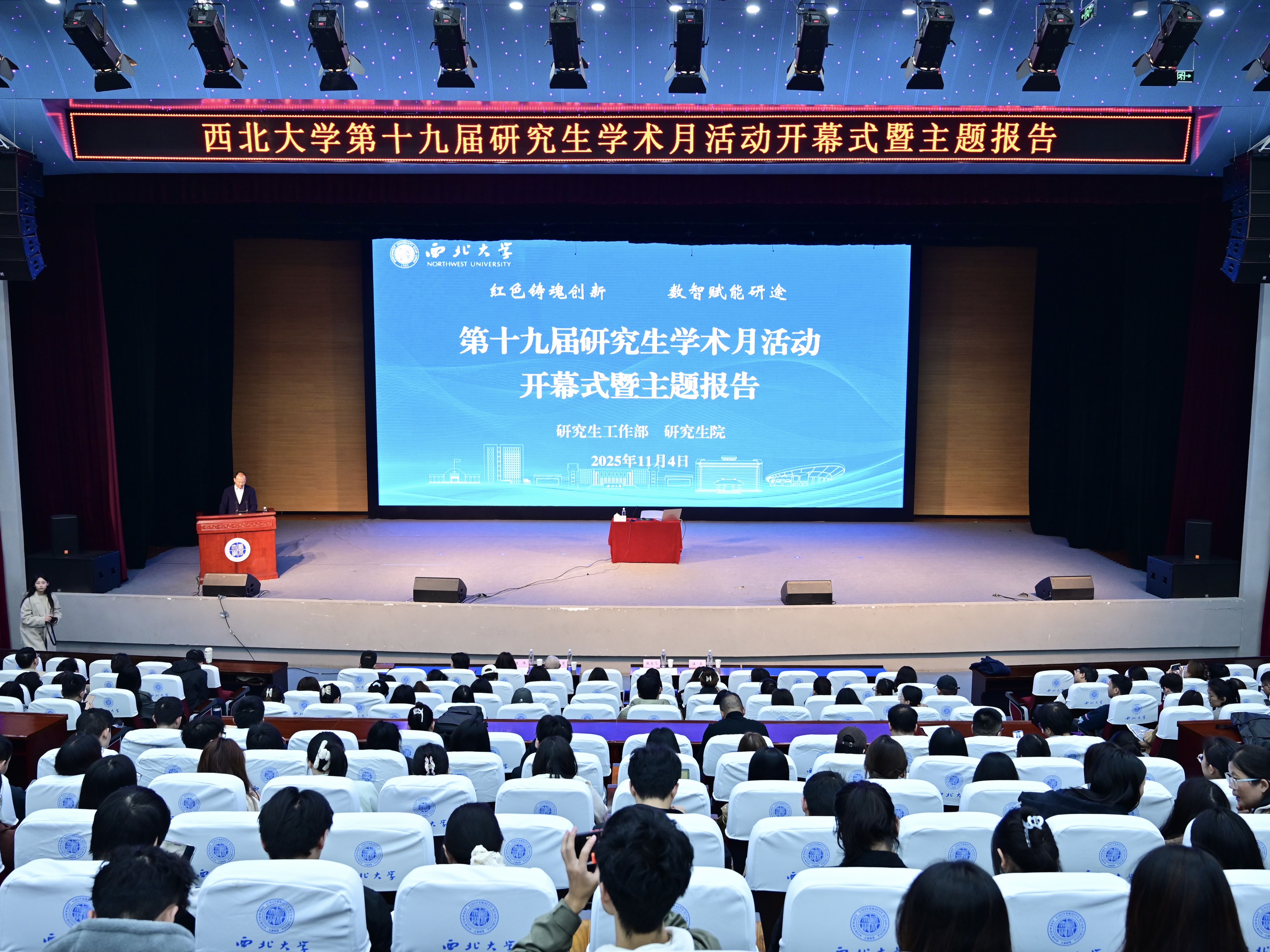 11月4日,我校第十九届研究生学术月活动开幕式暨主题报告在长安校区举行。校党委常委、副校长张志飞,经济管理学院白永秀教授,导师、研究生辅导员及研究生代表500余人共同参加。开幕式由研究生院院长温睿主持。
