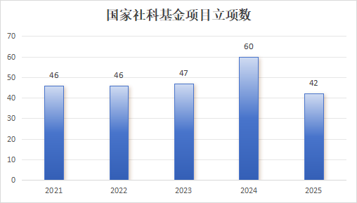 “十四五”以来,我校先后获批国家社科基金各类项目241项(其中重大项目18项、重点项目21项),教育部哲学社会科学研究重大专项4项,中华优秀传统文化专项课题(A类)重大项目1项,获批省部级项目291项(教育部人文社科基地重大项目5项、一般项目78项、陕西省社会科学基金项目202项),科研经费到款1.38亿元。国家级研究项目年度立项总数稳居全国20位左右,省内第一梯队(2022年、2023年、2024年连续三年位列陕西省首位),立项数持续保持高位运行。