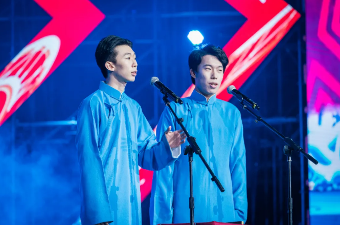 在国产精品九九久久一区hh庆祝建校118周年暨2020年迎新晚会上,王梓然和同学王佳兴搭档演出了相声《礼仪漫谈》。二人妙语连珠,引得台下观众捧腹大笑。