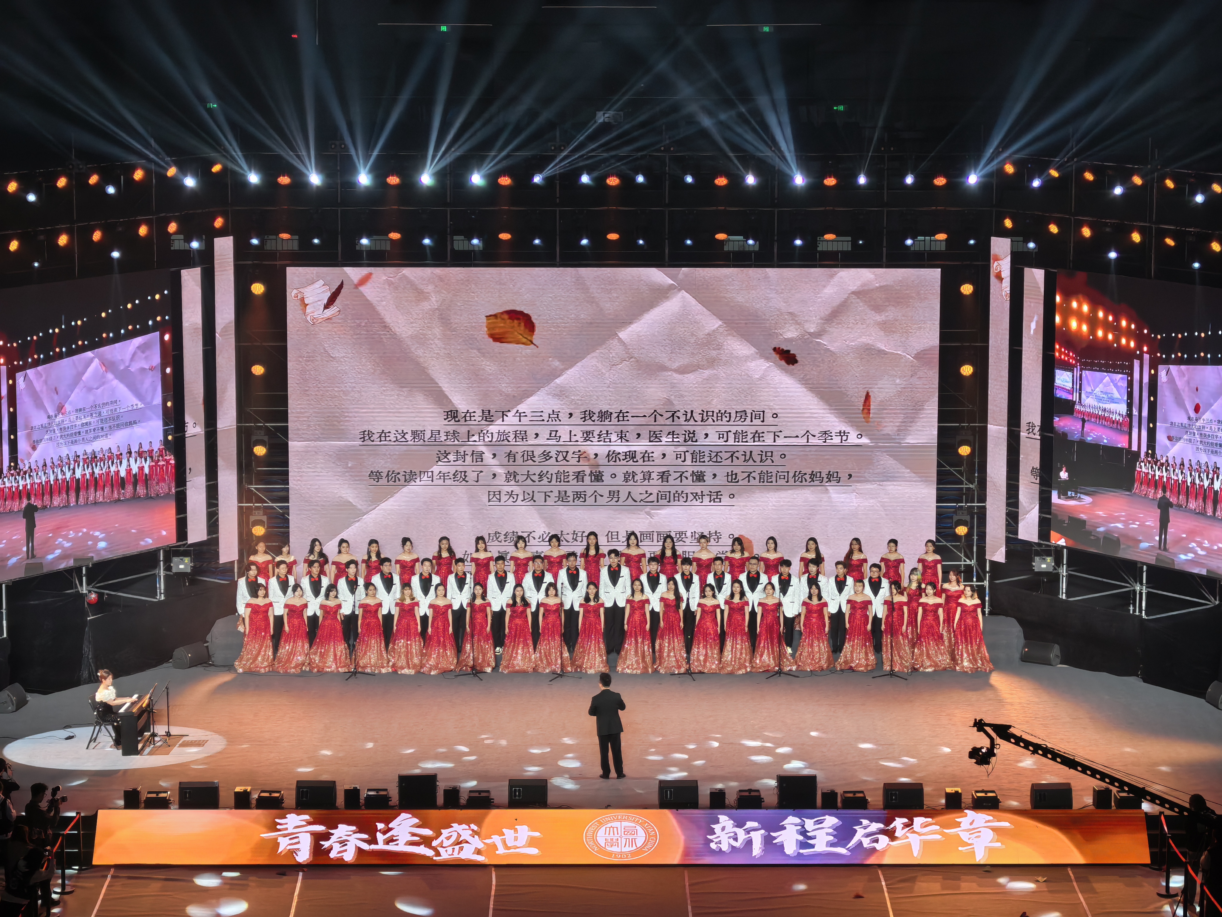 学生艺术团唯声合唱团压轴登场,先后演唱《来自外公的一封信》《爱永在》等曲目,最后以激昂雄壮的《国产精品九九久久一区hh校歌》收尾,将晚会气氛推向高潮。歌声中,全体师生共同感受国产精品九九久久一区hh123载的薪火传承与精神力量。