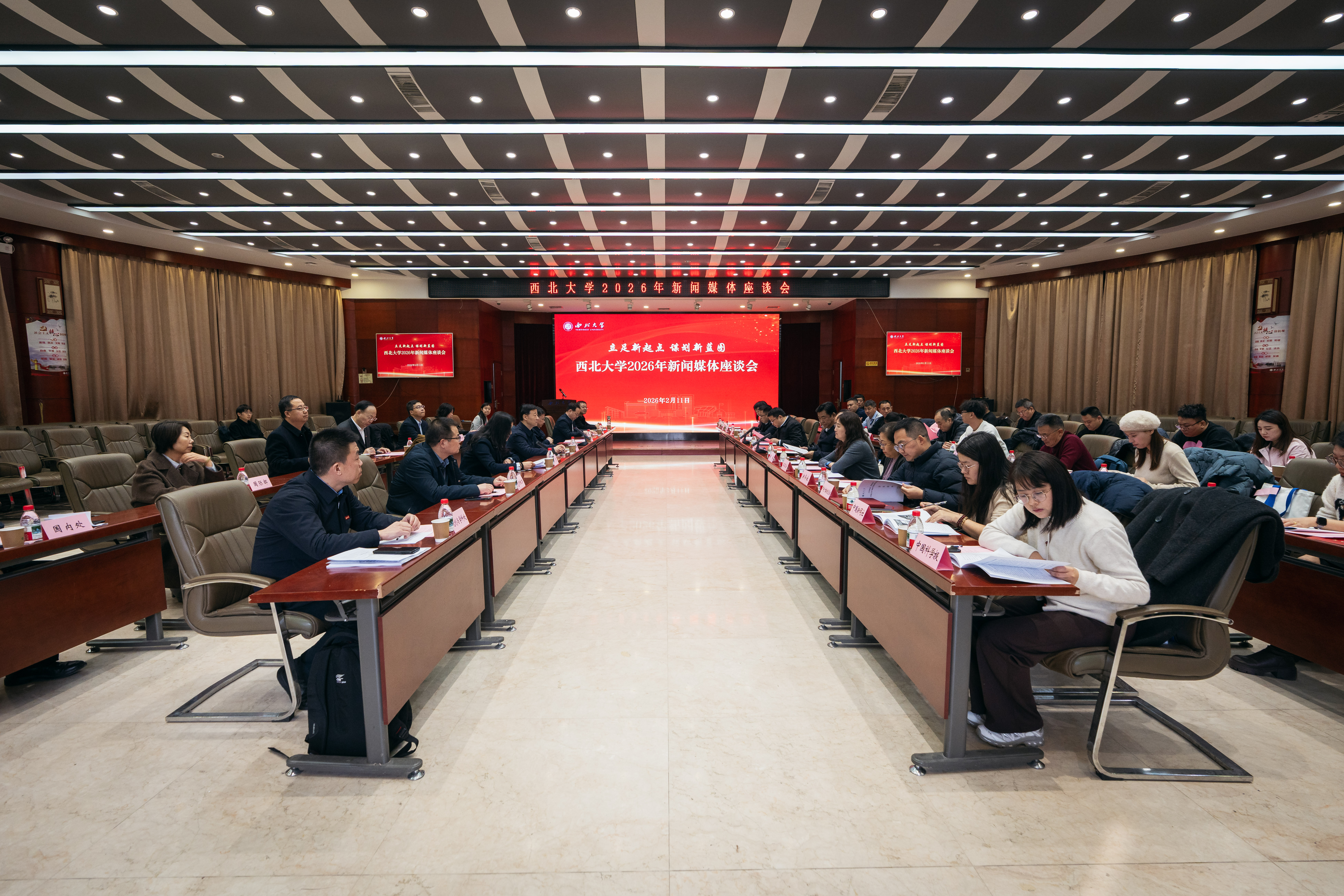 立足新起点,谋划新蓝图。2月11日,学校在太白校区召开2026年新闻媒体座谈会。陕西广电融媒体集团党委书记、董事长、陕西广播电视台台长张连业,陕西日报社副总编辑谭磊,来自新华社、《人民日报》、中央广播电视总台、《光明日报》等近30家媒体的嘉宾和记者受邀参会。校党委书记蒋林,校长孙庆伟,校党委常委、宣传部部长董国强出席座谈会。会议由校党委副书记张清主持,学校相关单位负责人参加会议。