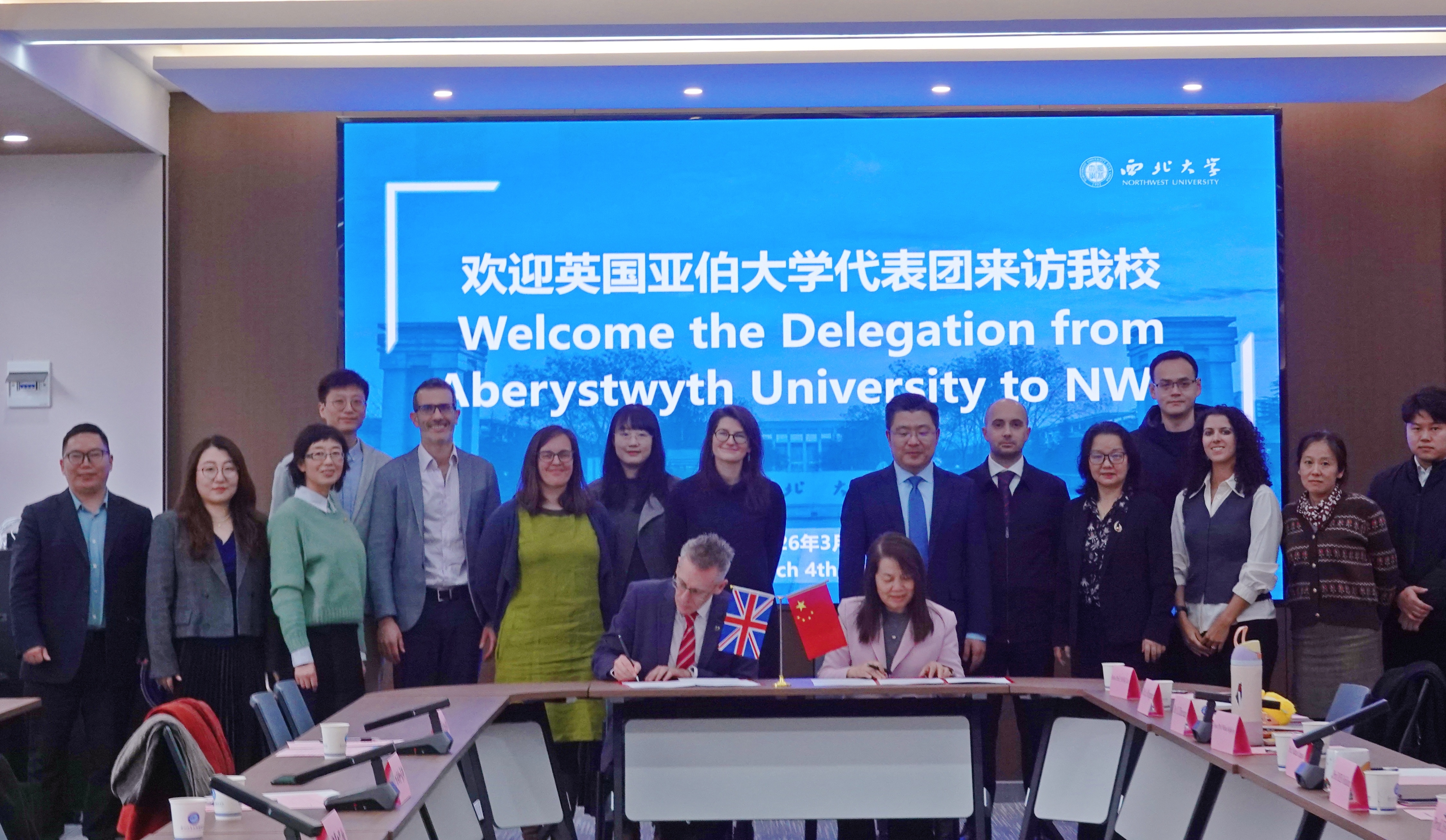3月3日,英国亚伯大学常务副校长伊恩·巴伯(Iain Barber)教授率代表团访问我校,我校副校长范代娣出席座谈会,并代表学校与伊恩·巴伯教授签署了学生联合培养协议。国际合作部常务副部长何玮主持会议,区域国别学院、地质学系、城市与环境学院、电子信息学院相关负责人、教师代表以及西大留学亚伯校友代表参会。