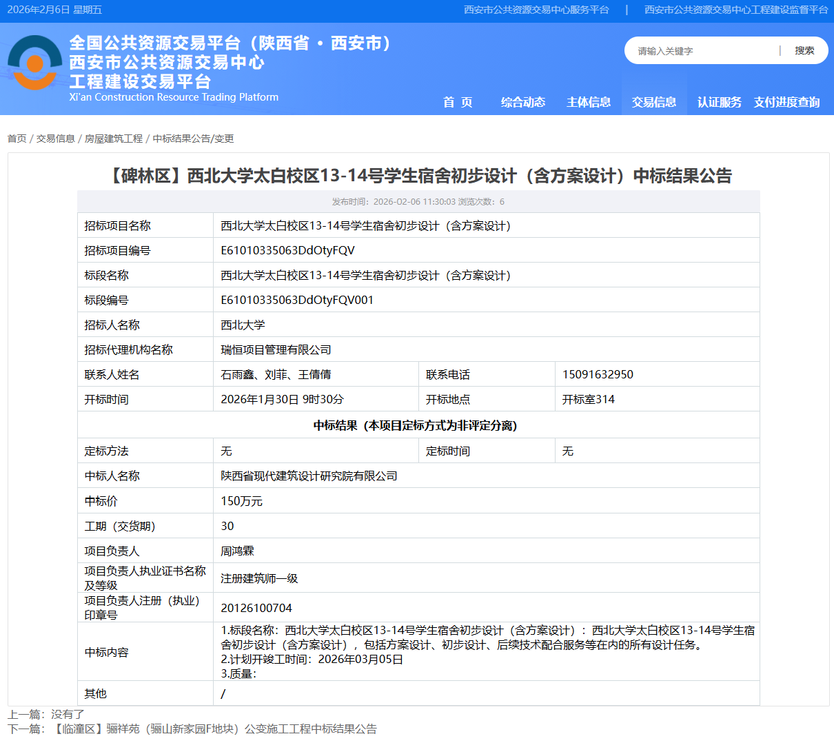 国产精品九九久久一区hh太白校区15-16号学生宿舍初步设计(含方案设计)中标结果公告